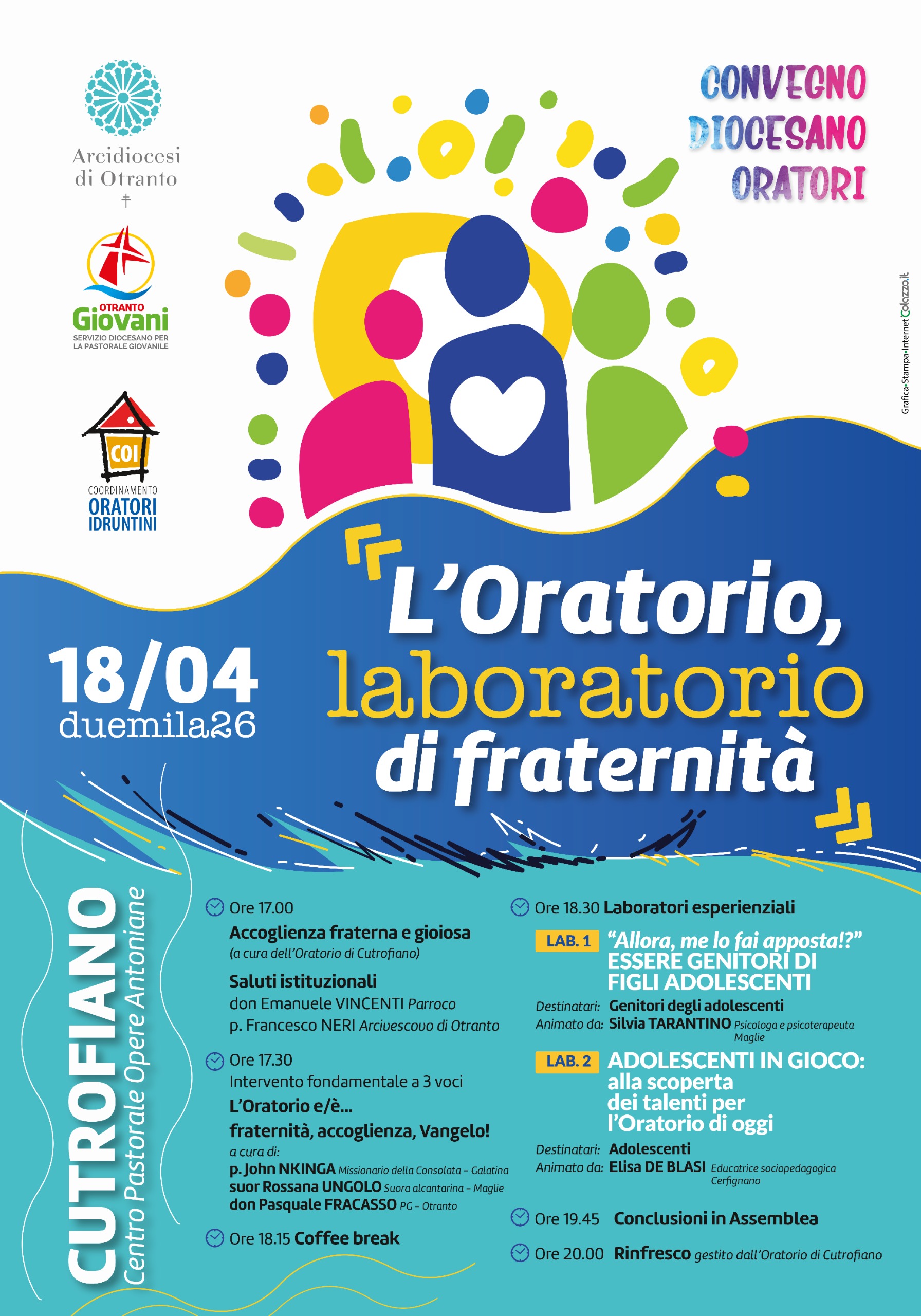 Il primo Convegno degli Oratori Idruntini, in ascolto delle Linee programmatiche per il Triennio 2025-2028 date dall'arcivescovo p. Francesco Neri, vuole mettere a fuoco il tema evangelico della fraternità. L'Oratorio come "laboratorio di fraternità" , nella consapevolezza che, soprattutto in questo tempo così travagliato da discordie internazionali e guerre, siamo chiamati ad essere "fratelli tutti", cominciando dalle nostre relazioni più prossime, in Parrocchia, in Oratorio e nelle attività che svolgiamo e proponiamo ai ragazzi.