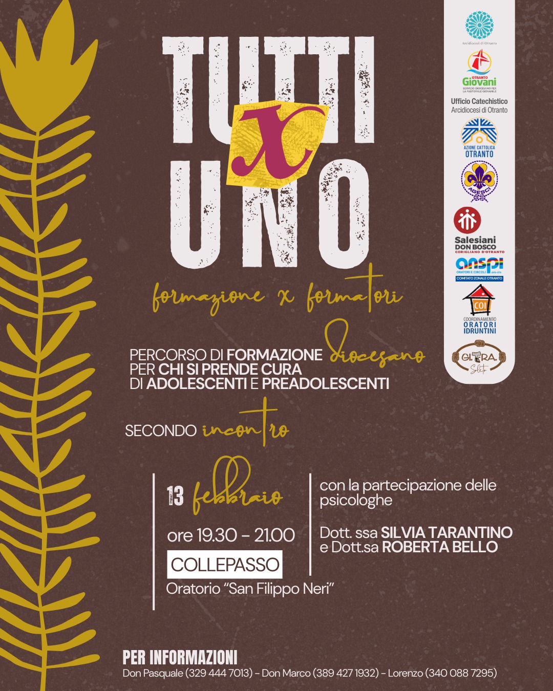 Venerdì 10 aprile 2026 a Cerfignano avrà luogo il terzo appuntamento formativo del TuttiXunO, piattaforma formativa diocesana per Animatori ed Educatori dei Preadolescenti e degli Adolescenti.